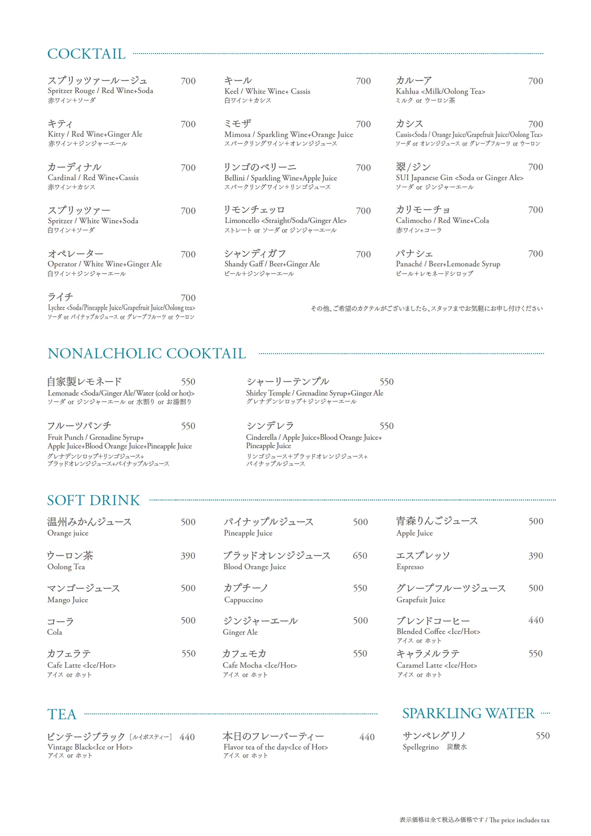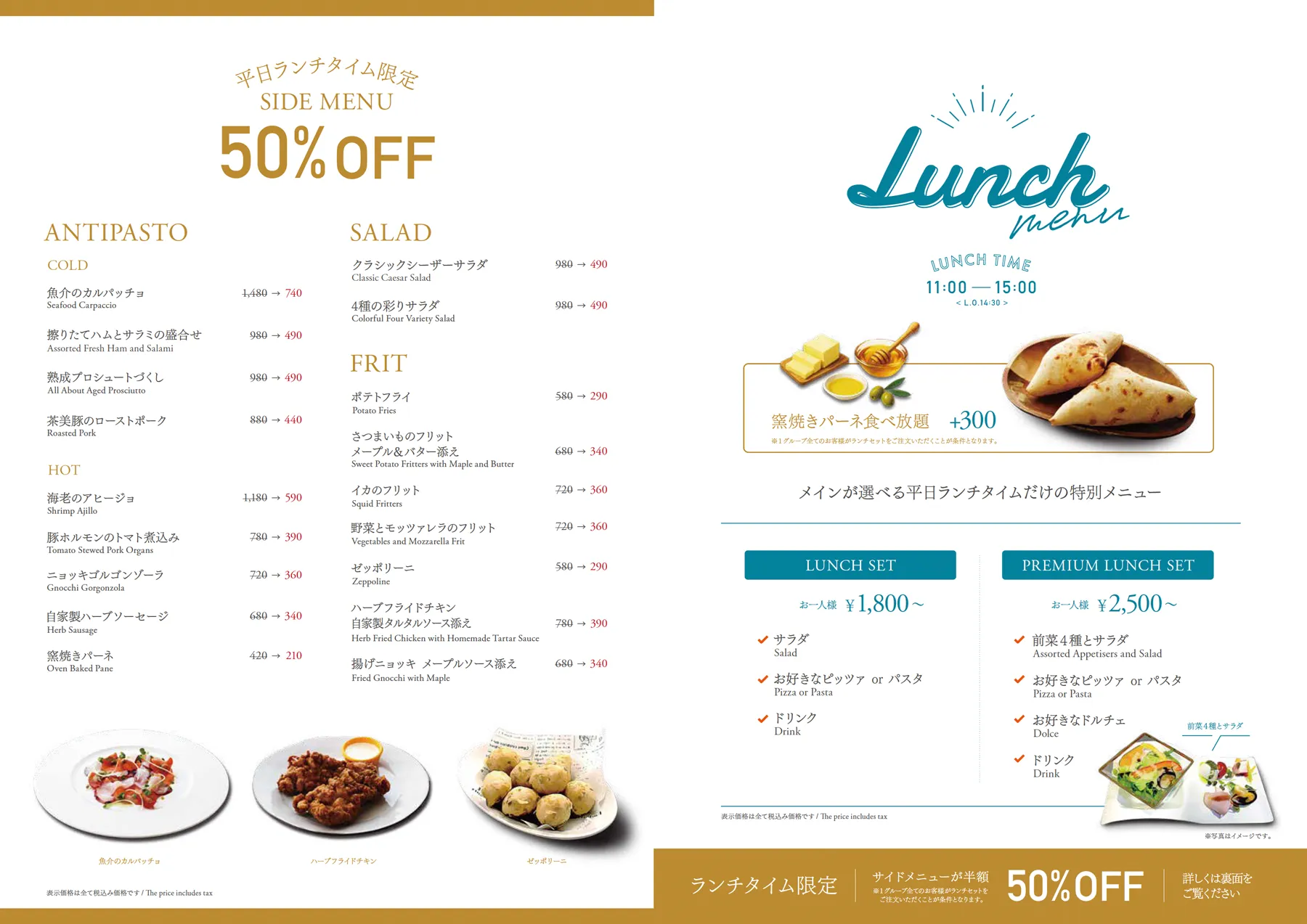 [平 日]11:00-15:00(LO.14:30)/17:00-22:30(LO.22:00) [土日祝]11:00-22:30(LO.22:00) |