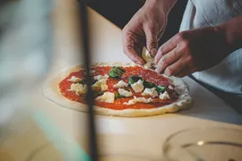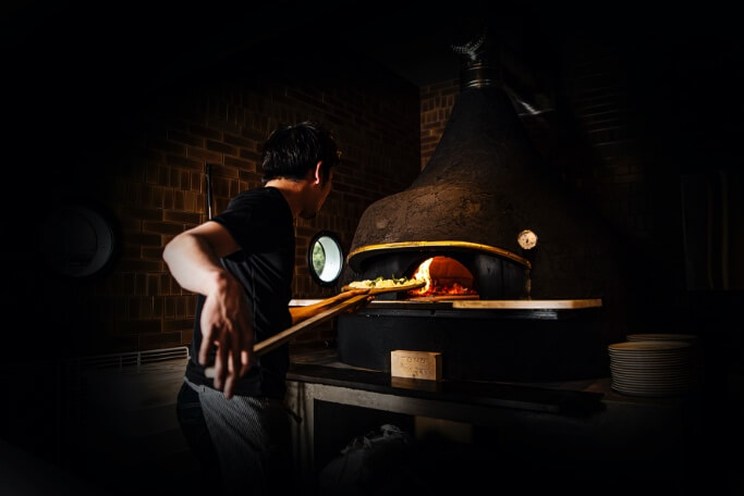 自慢のピッツァは、イタリア産の小麦粉を使用しています。生地は職人が一枚一枚手仕込みし、厳選した食材をトッピング。本場ナポリから直輸入された薪窯で、高温で一気に焼き上げます。ほかにもイタリアから取寄せたサラミや、イタリアビール「ペローニ」を始め、ワインやシャンパンもイタリア産を揃えています。お好きなお飲み物と一緒に、もちふわの絶品ピッツァや本場のサラミをご賞味ください。