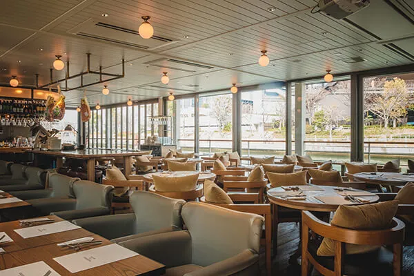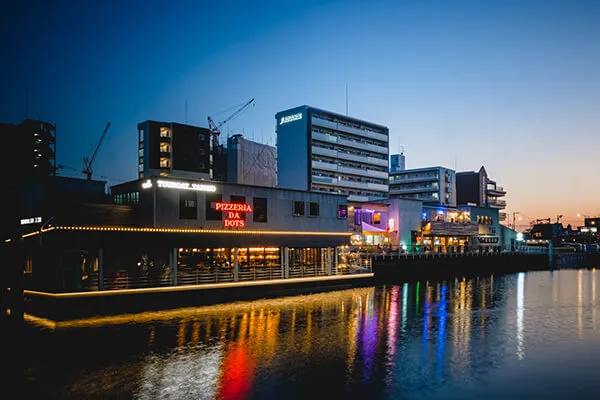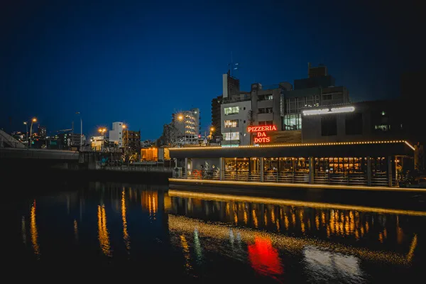 大正区尻無川に浮かぶロケーションや、店内に併設のバーが、食事・空間の両方を演出します。店名の「DOTS」は多くの人と、地域を結ぶお手伝いが出来れば、との思いからきています。大切な記念日や、二次会・パーティーなどの貸切もご利用いただけます。