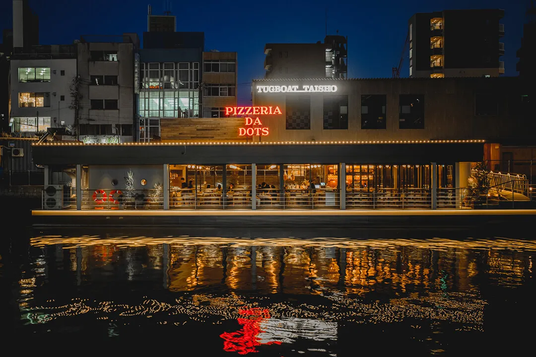 大正区尻無川に浮かぶロケーションや、店内に併設のバーが、食事・空間の両方を演出します。店名の「DOTS」は多くの人と、地域を結ぶお手伝いが出来れば、との思いからきています。大切な記念日や、二次会・パーティーなどの貸切もご利用いただけます。