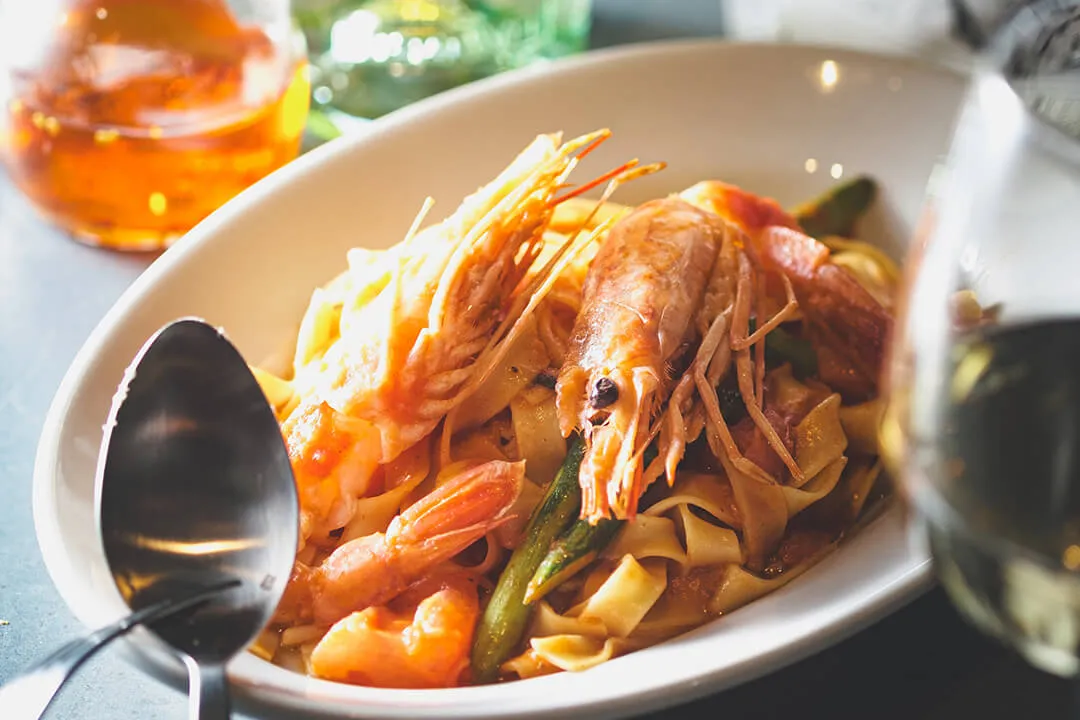自慢のピッツァは、イタリア産の小麦粉を使用しています。生地は職人が一枚一枚手仕込みし、厳選した食材をトッピング。本場ナポリから直輸入された薪窯で、高温で一気に焼き上げます。ほかにもイタリアから取寄せたサラミや、イタリアビール「ペローニ」を始め、ワインやシャンパンもイタリア産を揃えています。お好きなお飲み物と一緒に、もちふわの絶品ピッツァや本場のサラミをご賞味ください。
